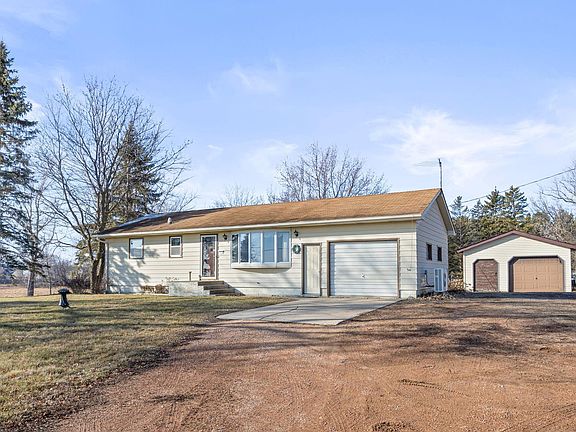 2 bedroom rambler on a large lot 0.639 acres on the edge of town. Main level features kitchen, living room, dining room, 2 bedrooms and full bath. Lower level features a walk out basement with a office, family room, and bonus room. Spacious backyard offers ample space for outdoor activities. Detached garage 18x26 and another detached garage that needs some TLC. Welcome Home!