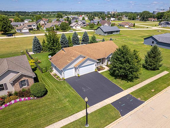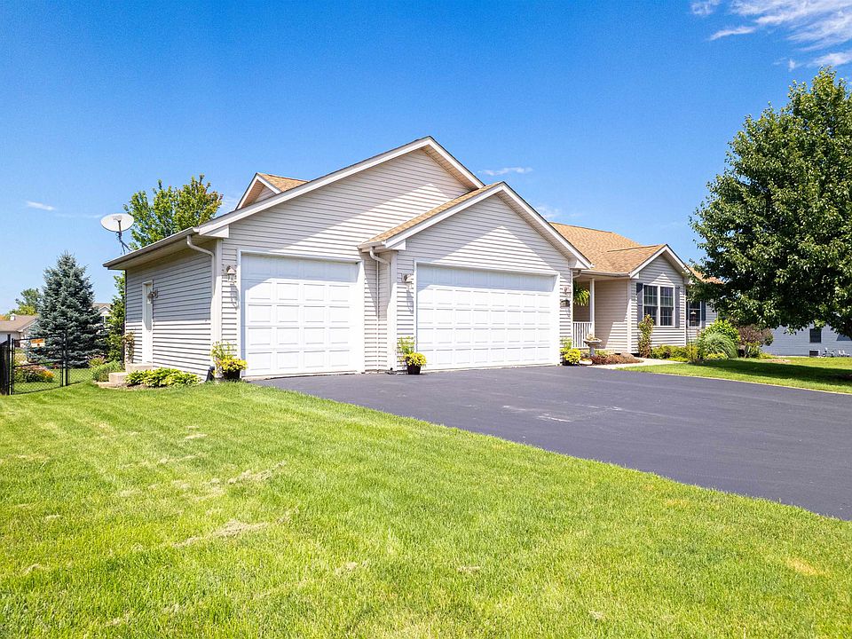 Located in the desirable Homestead subdivision, this well-maintained ranch home offers the perfect blend of comfort, functionality, and convenience. Set on a rare double lot with a portion already fenced in, the home offers just the right amount of privacy while still being close to town amenities. With a low-maintenance exterior and move-in-ready condition, it’s a great fit for anyone seeking easy living with room to relax and entertain. Step inside to an open, welcoming layout where the eat-in kitchen flows into the main family room—perfect for both daily living and entertaining. The kitchen features plenty of space for a dining table, bar seating, and easy access to the family room. From here, sliding glass doors lead out to a Trex deck that overlooks the spacious backyard—a perfect spot for morning coffee or grilling out. Whether you're enjoying the green space or relaxing on the deck, the setting offers a quiet, backyard retreat. The thoughtful split-bedroom design gives added privacy to the spacious primary suite, which includes a walk-in closet and full en-suite bathroom. On the opposite side of the home are two additional bedrooms that share a second full bath, making this layout ideal for families or guests. Just off the oversized three-car garage is a laundry room with a handy half-bath—perfect for coming in from yard work or projects without tracking through the house. The finished lower level adds even more flexibility to this already spacious home. A large open area with daylight windows offers endless possibilities for a second living space, game room, or home theater. The built-in bar area is ideal for entertaining and pairs well with a pool table or rec room setup. You’ll also find a fourth bedroom and a full bathroom downstairs—great for guests or a growing family. Even with all the finished square footage, there’s still ample storage space available. This property’s location combines the best of both worlds: quick access to I-39 and US-20 for commuters, and close proximity to local schools, parks, and shopping. With plenty of room to spread out both inside and out, this home is a rare opportunity in one of the area’s most sought-after subdivisions.