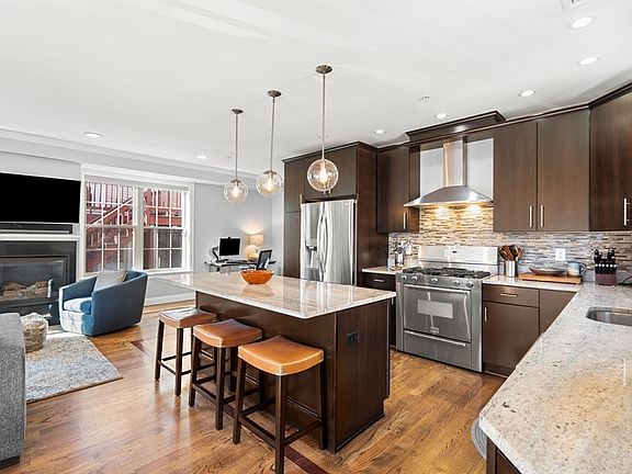 East side gem is ready for its next owners! This stunning newer construction home has everything on your wish list. It offers a designer kitchen with shaker style cabinets, granite countertops, stainless steel appliances and a terrific center island. The kitchen is open to a spacious dining and living area great for entertaining. A private deck off of the dining area along with a gas fireplace completes this part of the home. The main bedroom accommodates a king size bed, space for a sitting area and features amazing city views, a walk-in closet and an en-suite bathroom with a double vanity, shower and jacuzzi tub. The guest room is generously sized and is next to a tiled guest bathroom. Hardwood floors, generous closet space, recessed lighting, in-unit laundry, 1 car parking and private basement storage complete this terrific offering. Close to restaurants, shops, public transit, the beach, the Seaport and all that South Boston has to offer. First showings at weekend open houses!