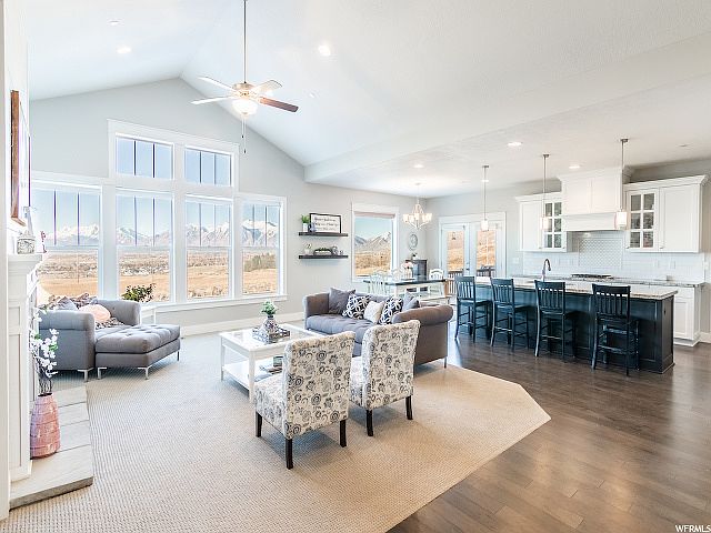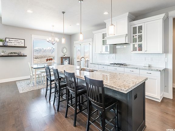 This is a beautifully designed, custom built home with gorgeous views of the mountains and valley. The location is amazing! Open floor concept is great for entertaining and enjoying each others company. A deck off the kitchen gives you the most incredible place to relax to watch the sunset. The master bedroom offers an incredible view of the Utah Valley and Mt Timpanogos. His & Hers closets and double vanity sinks in master bath. Basement offers 3 finished bedrooms and a full bath with custom faux beams in large open area. All bedrooms are large with oversized closets. Custom cabinets in garage with plenty of built in overhead storage.