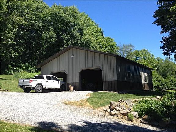 ALL THE PRIVACY YOU CAN ASK FOR & STILL BE CLOSE TO EVERYTHING - GARAGE IS 36X48 & CAN EASILY BE WIRED - GARAGE FLOOR IS GRAVEL - ACCESS CROSSES LIVE RR TRACKS & DRIVEWAY HAS A SHARED AGREEMENT WITH NEIGHBOR - TRAIN COMES THRU 2X A DAY MON-FRI - MATURE TREES MAY HAVE SOME VALUE TO TIMBER AS THERE IS CHERRY ON THE PROPERTY - BRAND NEW HEAT PUMP IN MAY - STAINLESS STEEL APPLIANCES IN THE KITCHEN ARE ONLY 2 YEARS OLD - BEAUTIFUL SETTING & SELLER IS CONVEYING ALL OGM RIGHTS - HOME IS NOT VISIBLE FROM THE ROAD