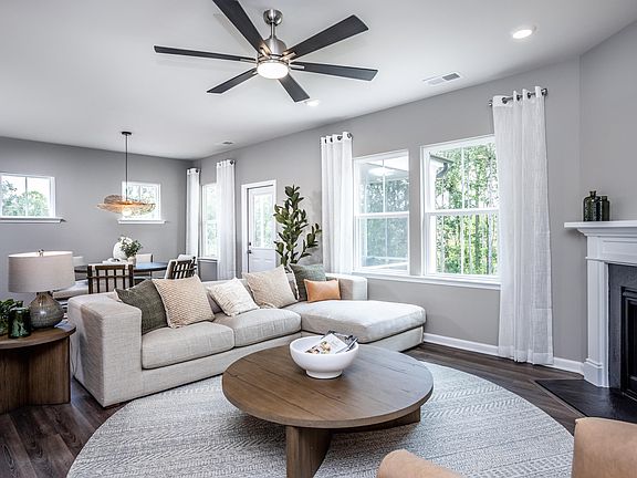 Ready Now - just in time to enjoy the pool and amenities this Summer! Sip lemonade on the charming front porch. The Hampton boasts a first-floor guest suite with full bath, a study that is perfect for WFH, plus a large loft. The screened porch overlooks the open backyard with tree view. Oversized owner's suite has a WIC, trey ceiling, and 5' tiled shower. Modern kitchen has grey cabinets and quartz countertops. Smart home features included, plus an EV charger. HOA includes 1 gig high-speed internet and streaming TV service.