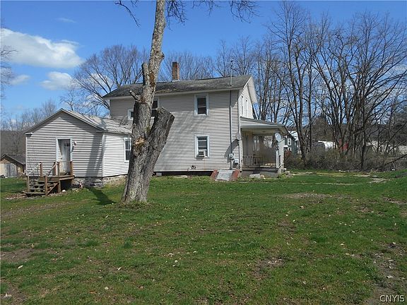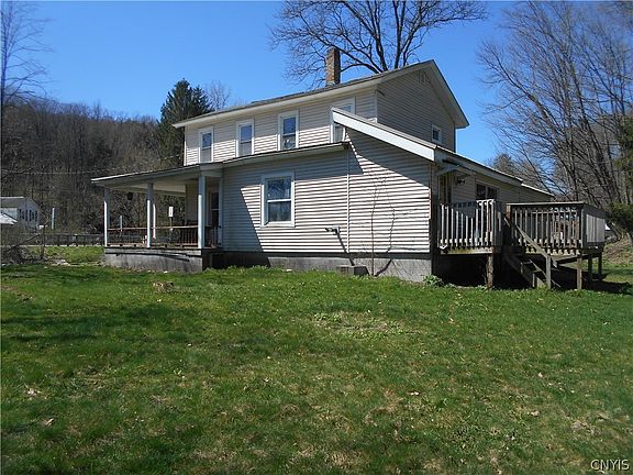 Open the windows and enjoy babbling Jennings Creek that runs alongside this country property. Situated on one acre, make this 3 bedroom, 1.5 bath, two story home your own. Hardwood floors throughout along with other natural hardwood. Sit at the breakfast bar to eat if you like. You'll enjoy the walk-in pantry that is conveniently located next to a bonus room for storage or use however you like. Laundry hook up is on the first floor within the half bath and there is a perfect spot to install your wood stove or pellet stove if that's the heat you prefer. All three bedrooms are upstairs with the full bathroom. The newer back deck that's off the dining room also has a perfect view of the creek and the two buildings that are included. The wrap around front porch needs some work, and when it's done you can relax while taking in the sounds of nature. There is also a two car detached garage with storage upstairs. Located between Binghamton, Ithaca and Cortland and only a few minutes drive to I-81. 10 minutes to Greek Peak and Hope Lake Lodge. Seller reserves the right to set a day/time to review offers.