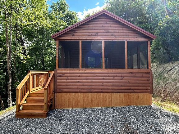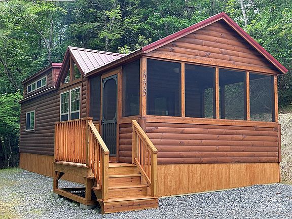 Rustic Park Model cabin with red cedar log siding, large screened in porch and custom handmade hickory cabinets. With almost 400 sq. ft. you will find incredible versatility in the open floor plan that includes a living room, kitchen and dining room area, bedroom, full bath, space for a stackable washer & dryer and a loft. All furniture is included in the sale. This spectacular tiny home is in Tiny Mountain Estates, which is only 15 minutes from downtown Franklin NC. The development is designed for both full-time residents and vacation rentals and located in a gorgeous area of Macon County with short- and long-range views of the valley. All roads in development will be paved completely once construction is complete.