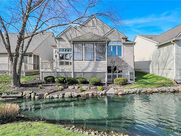 BEAUTIFUL & PRISTINE HOME features 3 bedrooms, 3 full baths, sunroom & walk-out basement overlooking serene view of pond with fountain. One bedroom & full bath are on the main as well as the laundry room. Walk-out lower level has a bedroom + full bath & family room as well as plenty of unfinished storage. Open floorplan boasts soaring ceilings & gas log fireplace. Built-in shelving/cabinetry. Large updated kitchen has hardwood floors, granite counters & stainless steel appls with gas stovetop. Master bedroom has shower stall, garden tub, dual basin vanity, walk-in closets. Attached 2 car garage. Beautiful neighborhood is close to chic restaurants, shops & entertainment venues. Monthly fee includes maintenance of all grounds & snow removal.