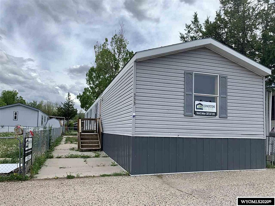 This home was built in 2004, and has 3 bedrooms and 2 baths. The large master suite has a walk in closet and extra storage.No land included and the home is in a 55+ mobile home park. Fenced yard, porch, and kitchen appliances are included. Lot rent includes water/sewer/trash. Contract for Title/Seller carry terms are an option. Call Dorie G Nelson/Cornerstone Real Estate 307-267-1190.