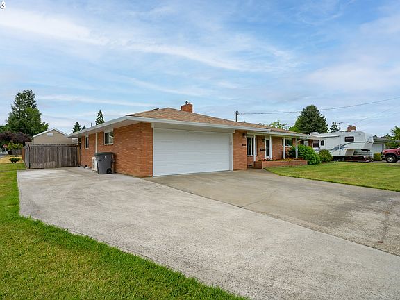 Charming single-story home located in a desirable McMinnville neighborhood. This adorable gem offers all the bells and whistles...including RV parking, covered patio, and a heated in-ground pool. It was originally a 3-bedroom floorplan, but the previous owners converted it to a 2-bedroom to offer a more spacious primary bedroom, very easy to covert back to a 3 bedroom. Original hardwoods throughout add warmth and character. Nicely updated kitchen feature stunning quartz counters, under cabinet lighting, gas range, and a cozy coffee bar that overlooks the inviting patio. The backyard is perfect for your family gatherings and relaxation with its beautiful landscaping, in-ground pool complete and raised garden beds. In addition to all the other wonderful features, there are 3 sheds on the property, plus an oversized garage with cabinets, providing ample storage for all your outdoor equipment. For those with an RV, the property offers ample RV parking.