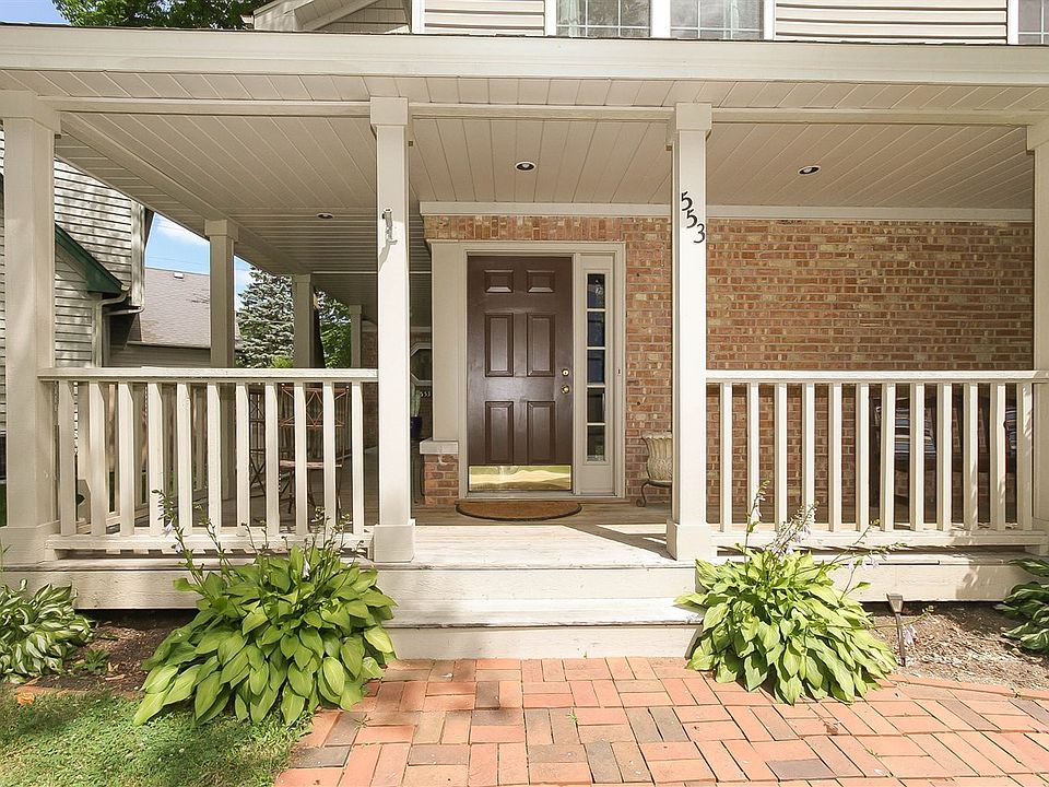 Extreme remodel-2008-Village two story home on desirable village street wrap around porch features First Floor Master, Master Bath and Walk in closet leads to quiet outdoor stone patio and sitting area. Inviting, open white Kitchen, granite counters, hardwood flooring and eating area, cozy Family Room with Fireplace, 3 Bedrooms, a separate loft that is ideal as a home office, library or computer workroom and two baths complete the second level. Finished lower level provides a recreation area, cedar closet, roomy laundry facility. Huge 2 level garage addition built in 2008 provides full second floor offering multiple purposes. Home is move in ready- Blocks to train, schools, shopping and restaurants. Convenient for walking to Library, Citizens Parks for concerts, bike riding, parades and coffee shops. Quick close possible- Move in before school starts! ROOF, ELECTRIC.KITCHEN, POWDER ROOM in 2008, 2nd Level added with zoned HVAC, main water supply 2008- 2 Car/ 2 Story Garage-2012.