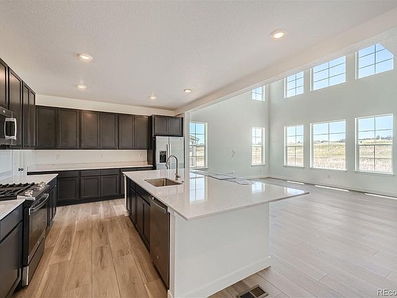 Ready August! Ask about special financing and below-market rates! Beautiful home backing to open space with massive covered deck to enjoy the scenic views of Elizabeth! This home features a kitchen any chef would dream of with expansive island overlooking the two story great room! Plenty of windows, capturing Colorado’s sunshine beaming off the dark cabinets and light quartz countertops, making this home pop! As you continue your way through the main level, enjoy a bedroom, bathroom, and large mudroom, open concept design with all the wow factors. Additional bedrooms plus owner’s suite located upstairs, loft space overlooking the great room, large laundry room, bright lighting throughout, this home has it all! The home also includes an unfinished basement with 9-foot ceilings for future expansion and a 3-car garage. Beautiful finishes and upgrades are found throughout. This community offers single-family homes for every lifestyle, close to dining, shopping, entertainment, and other amenities. Come see what you’ve been missing today! Welcome home! www.lennar.com/new-homes/colorado/denver/elizabeth/independence. Buyer to confirm taxes & square feet. Virtual tour of same floorplan but not actual home. https://my.matterport.com/show/?m=Vxqm8dVB1ET