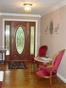 Gorgeous private retreat nestled in 3 wooded acres just minutes from town. Relax and watch nature on your covered front porch or back porch. The large detached garage will be great to store all the garden tools and toys. More storage space can be found in the walk in storage underneath the house. The house has been updated w/Brazillian Floors a stunning granite inlay in the great room. Welcome Home!