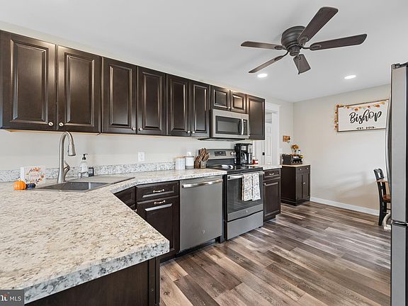 That's right! This home has been extensively remodeled not just made pretty!! From the front door enter into the living room from the covered front porch, to the left is the laundry room with coat closet hidden by a beautiful barn door, continue in the living room with laminated plank flooring with an open floor plan through the entire kitchen. This kitchen is a cooks dream, a breakfast area that seats 3, corner kitchen sink, GW appliances, dishwasher, range and built in microwave. As well a dining area. Then continue into the hall way where to your right is the primary bedroom and full bath with shower and double sink vanity, bedroom has great natural light and an oversized deep double closet. To the left is the second bedroom and full hall bath with tub and shower. This whole home has new windows, doors, etc.), high hat lighting through out. large basement for storage and great flagstone patio in the back for entertaining. Nice size yard and shed.