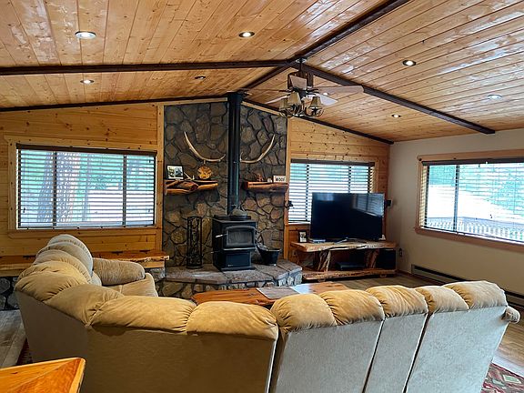 PRO PHOTOS TO COME..WOW Just 25 minutes outside of Payson & 15 mins to Forest Lakes is this cozy cabin nestled in the woods. Gorgeous 3 bedroom 2 bath cabin w/ attached garage AND a detached Oversized 878 sq ft 4.5 car tandem garage, w/ insulated block construction. All permitted! Remodeled cabin interior features Pine tongue & groove ceilings & walls, exposed Beams, Custom Stone Surround for the cozy Wood Stove/Fireplace, newer Wood look Ceramic tile throughout, Dual Pane Windows, Electric & Propane Heat features. Main level features the living area w/ walk out deck overlooking the trees, open kitchen w/ maple cabinets, full main level bathroom, bonus room w/exit to patio. then Walk down to the block construction lower level & enter Largest bedroom w/ patio access & walk in closet