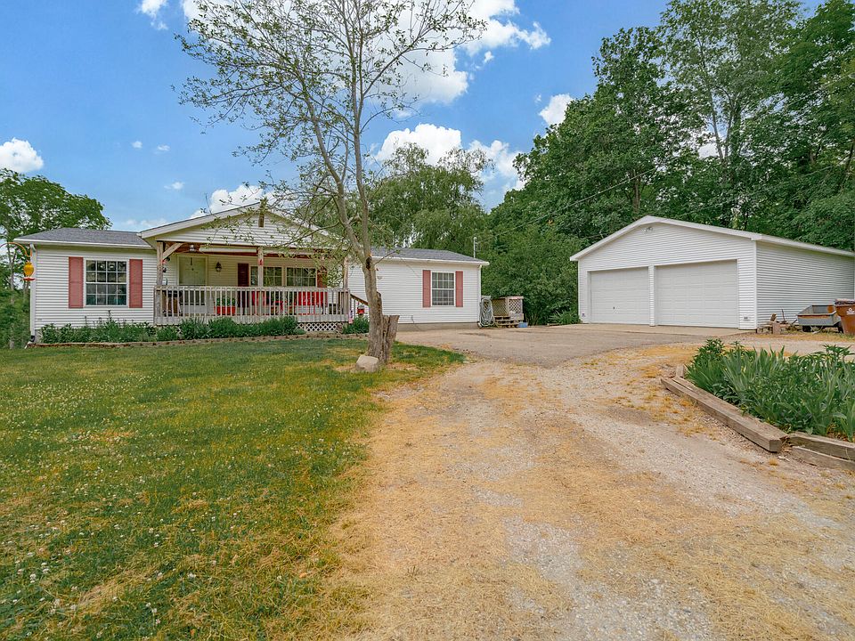 Embrace the perfect harmony between privacy and convenience with this 3 bedroom 2 bath home with partially finished walkout basement on nearly 3 acres. This home boasts a newer roof, central air, furnace, and plumbing. Unwind and watch the sunrise on the spacious back deck or enjoy the sunset on the large covered front porch. The extra large 2 stall garage has plenty of room for your tools and vehicles. Here is your opportunity to be close to town, but feel like you are in a country setting. Don't wait to see this one!