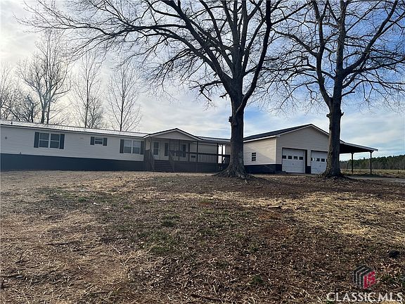 Fixtures, and stainless steel appliances. Brand-new heating and air, ensures years of comfort. There's also a separate two-car garage/ workshop complete with electricity. Over sized at 24 x 30! Location is fantastic, approximately 10 minutes to all the shopping in Hull. It's also about 10 miles to commerce Georgia. You won't believe the primary bedroom and bath. The master bedroom runs the whole width of the home, though perfect for a nice sitting area or office. You can sit on the rocking chair front porch, or the covered deck look out over a lake. From the home you can't see another property.