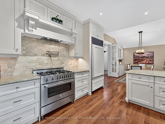 Welcome to Ridgewood, one of Aurora's most distinguished estate properties. Privately set behind gates on three manicured acres, this custom-built residence blends timeless architecture with modern luxury for an exceptional lifestyle. A circular drive leads to an elegant façade and inviting interior where refined craftsmanship meets everyday comfort. The chef's kitchen, equipped with premium appliances, opens to a grand vaulted family room with exposed beams and expansive views of the grounds. The main floor features a serene primary suite with a spa-inspired ensuite and custom dressing room. Upstairs, two additional bedrooms with private ensuites offer stylish comfort for family or guests. The finished walk-out lower level is designed for entertaining-featuring a home theater, gym, recreation lounge, wine cellar, and an arched-ceiling tasting room perfect for gatherings. A fourth bedroom adds versatility for guests or extended family. Above the three-car garage, a self-contained one-bedroom apartment includes a full kitchen, living room, and bedroom-ideal for multi-generational living, a nanny, a private office, or luxurious guest quarters.The outdoor setting is a resort-style retreat. Mature trees, lush gardens, and ambient lighting surround a stunning inground pool and hot tub. The poolside pavilion offers a fireplace, outdoor kitchen, two-piece bath, and change area-making entertaining effortless.With nearly 1,100 feet of frontage, enjoy your own walking trails, dog run, and direct access to the St. Andrews on the Hill trail network. Steps to St. Andrew's College and St. Anne's School, and just minutes to golf, shopping, and major highways.Ridgewood is more than a home-it's a private sanctuary where elegance, comfort, and nature exist in perfect harmony.