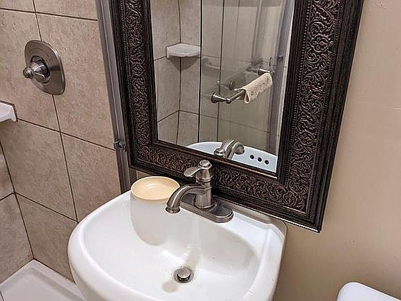Modern bath; spacious bedroom and living room with a carpet; large family room and huge back and front yard. The neighbors have been there for over 20 years. Two Shed containers in back of house for storage.