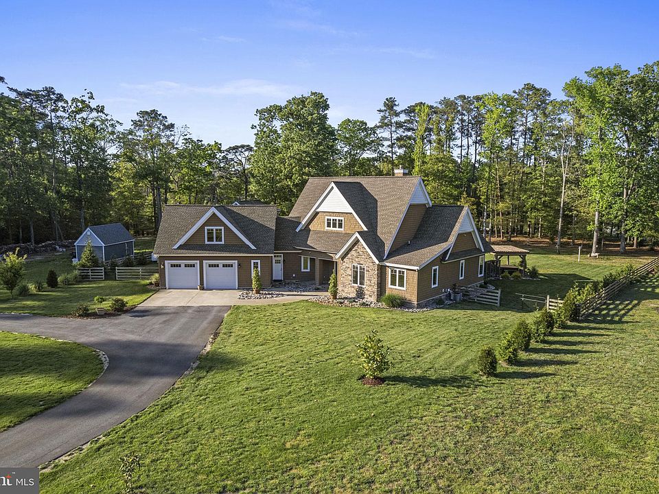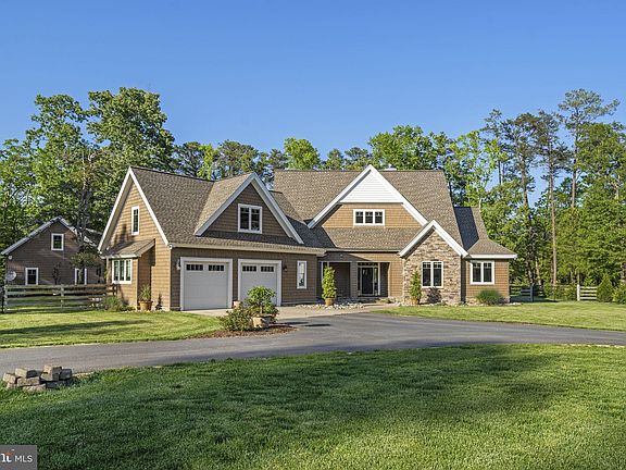 Welcome to your dream waterfront retreat on the stunning shores of the Chesapeake Bay. This meticulously designed custom-built home offers the perfect blend of luxury, comfort, and scenic beauty. As you step inside, natural light floods through expansive windows, highlighting the wide plank tile floors that lead you through the spacious layout. Right in the heart of the home is a chef's kitchen, complete with granite countertops, custom cabinets that provide ample storage, & top-of-the-line appliances. Beyond the elegant interior, this property boasts exceptional outdoor amenities. Imagine entertaining guests in the gourmet outdoor kitchen and dining area on the patio, overlooking your private dock sitting in the serene DEEP WATERS of the Chesapeake Bay. Whether you're hosting a summer barbecue or simply enjoying a quiet evening by the water, this space offers unparalleled tranquility. For those who appreciate additional space and convenience, the property features both an attached 2-car garage and a detached 2-car garage with a carriage house above with 495 sq ft (not included in sq ft of house), ideal for guests or as a private retreat. Relaxation awaits in the saltwater hot tub, surrounded by beautifully landscaped gardens that enhance the two-acre property's natural beauty. The maintenance-free exterior ensures your focus remains on enjoying the waterfront lifestyle without the hassle of upkeep. Retreat to the first-floor master bedroom, a sanctuary with views of the Bay, offering privacy and comfort with its well-appointed ensuite bathroom and spacious walk-in closet. This waterfront oasis combines luxurious living with the allure of waterfront life, presenting a rare opportunity to own a slice of paradise on the Chesapeake Bay. Don't miss your chance to experience the ultimate in coastal living!