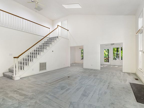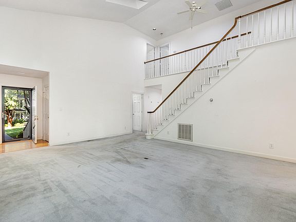 Spacious, end-unit townhouse in the Weathersfield section of Fearrington Village. Private, wooded setting with lovely views. The foyer opens to a living room with a fireplace and vaulted ceiling with skylights. Formal dining room. Kitchen with breakfast area. Sunroom. Half bath. Main-level primary bedroom suite with walk-in closet and private bath. Upstairs there are two large bedrooms with walk-in closets and a full bath with a skylight. Detached, one-car garage. Park-like setting is beautifully maintained by HOA. This home needs updating and is priced accordingly, so it has great potential!