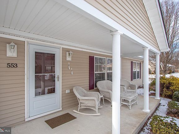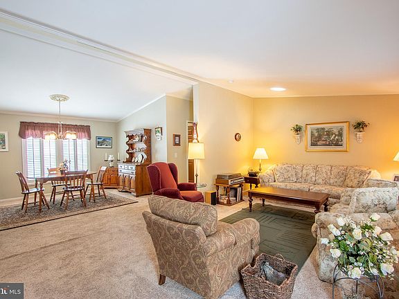 Discover Wild Meadows - Dover's premier 55+ active lifestyle community. This beautifully maintained and thoughtfully updated home features an open concept living space with vaulted ceilings, generous kitchen with handsome oak cabinets, breakfast nook, island, walk-in pantry and breakfast bar. Three comfortable bedrooms and two full baths including the primary suite with new flooring, walk-in shower, linen closet, large vanity and large walk-in closet. New roof (2023), HVAC (2024), Solar tube skylights, upgraded lighting & ceiling fans throughout. Relax and enjoy the lovely three season porch with all new windows plus a breezy front porch, and one car garage nestled on a quiet street within walking distance to the clubhouse. Community amenities include a well appointed clubhouse with gym, hot tub, bocce ball, library, pool tables, banquet room, and a heated pool. The monthly land lease $715 covers lawn mowing, snow removal, and access to all the community amenities. Conveniently located with easy access to restaurants, shopping, casinos, entertainment, recreation, healthcare and just a short drive to the Delaware beaches!