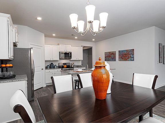 Our Cali plan is a thoughtfully designed one level home with a beautiful, open concept living area that is perfect for entertaining. The kitchen features granite countertops, an oversized island, 36" cabinetry, a walk-in pantry, and stainless appliances. The large owner's suite is tucked away at the back of the home, separated from the other bedrooms, with a walk-in closet and spacious en suite bath with a double vanity, 5' shower, and separate linen closet. Low maintenance vinyl flooring in the main areas gives the look of wood with easy care and cleanup! Spacious covered rear porch adds additional outdoor living space. 2 inch faux wood blinds included on all standard windows. This is America's Smart Home! Each of our homes comes with an industry leading smart home package that will allow you to control the thermostat, front door light and lock, and video doorbell from your smartphone or with voice commands to Alexa. *Photos are of a similar Cali home. (Home and community information, including pricing, included features, terms, availability and amenities, are subject to change prior to sale at any time without notice or obligation. Square footages are approximate. Pictures, photographs, colors, features, and sizes are for illustration purposes only and will vary from the homes as built. Equal housing opportunity builder.)