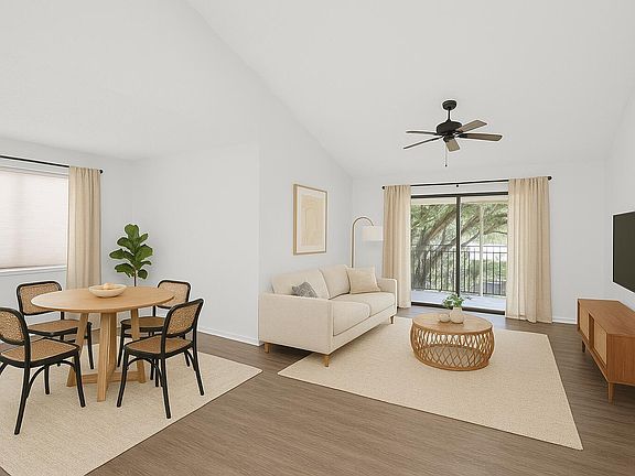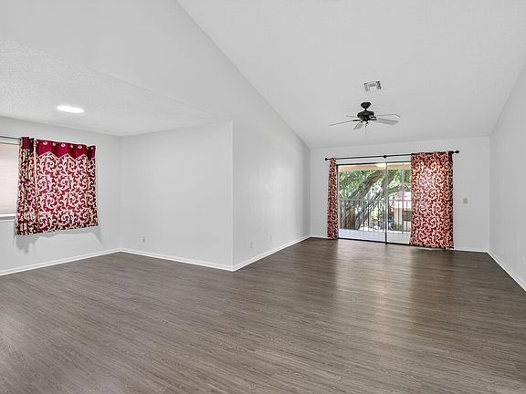Tucked away on a quiet cul-de-sac in the all-ages Coach Houses of Town Place community, this spacious 3-bedroom, 2-bath home with a 1-car garage offers peace, privacy, and convenience. This is a highly desirable corner unit offering abundant natural light and a private front door entrance. The freshly painted interior features wood-look laminate flooring and vaulted ceilings, creating an open and airy feel throughout. Enjoy a large eat-in kitchen, separate dining area, and a comfortable living room - perfect for entertaining. Step out onto the expansive screened-in balcony and take in views of a lush green area shaded by a mature banyan tree. The stacked bedroom floor plan includes a primary suite with a walk-in closet and an ensuite bathroom featuring dual sinks and a sunken tub. Two additional bedrooms and an in-unit laundry room round out this lovely home. Other notable features include a new AC (1 year) and newer hot water heater (4 years). Ideally located near Town Center Mall, FAU, Lynn University, A-rated public schools, dining, shopping, and beaches. Residents enjoy access to the community pool.