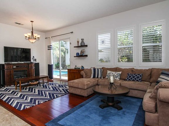 OPEN HOUSE SUNDAY AUGUST 13TH!! Fabulous Gated Community @ Sunny Creek. This home shows like a model, located on top of culdesac and has spectacular views. Gorgeous cherry hardwood floors, Brand new carpet upstairs, new paint, custom plantation shutters throughout. Very high ceiling with lots of light. Granite kitchen counters, brand new stainless steel refrigerator. Optional fourth bedroom downstairs currently an enclosed office PLUS a huge loft upstairs. Spectacular outdoor patio. Private pool and spa.