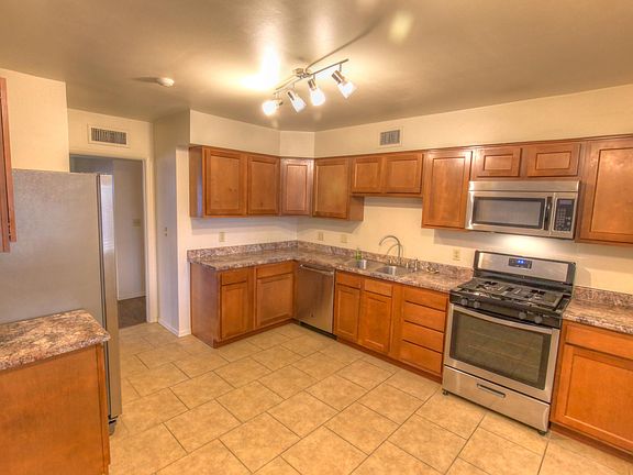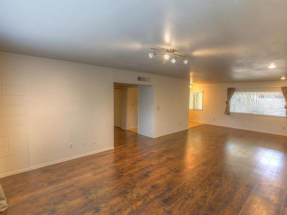 Great location convenient to everything. Updated kitchen, 2 full bathrooms with lots of cabinetry, fresh flooring, dual paned windows, AC, block wall, stainless appliances, large in-door laundry room, mature landscaping that offers privacy plus fresh citrus fruit, large covered patio. Plenty of parking and wide gate access to backyard.