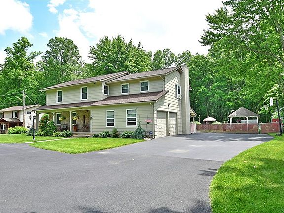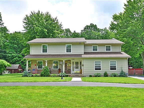 Delight in the personal paradise of this amazing Cortland home! Offering up premiere lakeside location and an elaborate backyard to include a breathtaking pool and covered patio area! A wrapping driveway sweeps across the front of the home, as it presents itself with a striking array of features. The relaxing front porch brings you inside while the drive continues past a two-car attached garage before ending at the fenced in pool area. Around back, a large 20x30 shop offers garage bay access while a firepit and separate storage shed complete the package. Through the tiled foyer, a welcoming living room opens to reveal hardwood style flooring that continues into the nearby dining area. A brightly lit kitchen is trimmed in faux brickwork as it showcases its array of bright white cabinets that surround casual, eat-in dining. The first-floor half bath brings rear patio access for long days in the pool. Around the corner, a posh family room awaits with a towering mantle and inset fireplace. French doors gain rear entry while providing plenty of natural light. Upstairs, the four bedrooms include a lavish master suite with an oversized floorplan, walk in closets and full private bath with bespoke vanity and shower. An additional full bath joins the remaining three bedrooms at mid hall. Below, a partially finished basement lends to lower laundry and workshop space. All of this backs up to Mosquito Lake access, so many updates please inquire. Be part of your very own paradise.