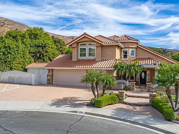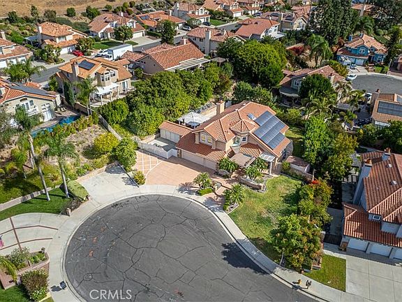 Welcome to this wonderful pool home in the Belcanto tract of Bryant Ranch! Tucked away on it's premium lot of approximately 14,300 square feet (nearly a third of an acre), the property encompasses over half of the cul-de-sac. It features great curb appeal including an expansive front yard with mature landscaping, beautiful hardscaping, and a wonderful, covered courtyard leading to the front entry. There's a gated RV parking area with a shed for storage and workshop, and even a mini basketball court area...all in the front yard! The attached, direct access 3-car garage and deep driveway can easily accommodate parking for 6 cars. Inside, you'll find a bright, open floor plan with four bedrooms and three baths (one bedroom and one 3/4 bath downstairs), a sunny kitchen that is open to the family room with fireplace, large living room with vaulted ceilings and attached formal dining area. Gorgeous bamboo flooring throughout downstairs. Upstairs features include a double-door entry primary bedroom and en suite bath with deep, soaking tub, separate shower, double-sink vanity, and walk-in closet. There are two secondary bedrooms with custom built-ins and walk-in closets. Upstairs secondary bath has a single-sink vanity and shower over tub combination. Carpeted stairway has been upgraded with on-trend wrought iron and wooden railing. Upper bedrooms and halls are carpeted. Designer interior paint. Custom, beveled glass dual-pane windows throughout. Completely re-plumbed with PEX piping. Backyard is built with entertainment in mind, and features a gorgeous pebble-textured pool and spa, a large grassy area, large, custom-built, raised-deck "cabana" with adjacent fireplace. A solar electrical system helps to keep the electrical bills low. Bryant Elementary, Travis Middle, Yorba Linda High School. Just a short distance to Brush Canyon Park with sports fields, tennis and basketball courts, and pickle ball! Nearby Santa Ana river trail is great for walking, jogging and cycling and goes all the way to the Newport and Huntington beaches. You do not want to miss this one!
