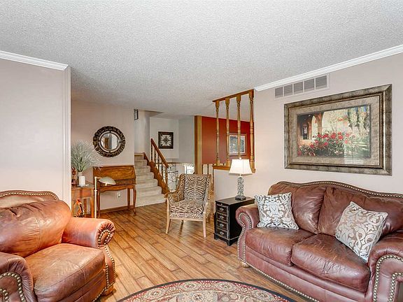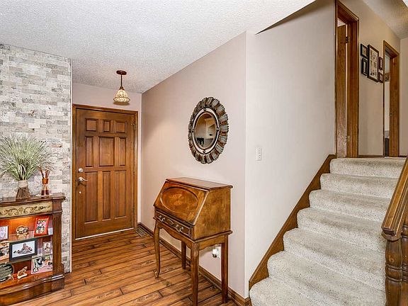 Nestled within an established, peaceful neighborhood this one owner, well maintained quad, is move in ready for it's next owners. The 4 bedroom 3 bath home sits on .92 acre treed and beautifully landscaped lot. When you enter the house your eyes are immediately drawn to the backyard enhanced by an amazing covered deck. The homeowners spend most of their time right here enjoying the peaceful sounds of the birds. Being a quad this home has different living areas for any family to spread out. On the main floor is the living room with beautiful luxury flooring as well as the kitchen and eating area. The kitchen has been updated with a gorgeous granite, tile backsplash and all new custom soft close cabinetry with 3 large Lazy Susan's and under-counter lighting. Don't miss the stone front island. Very unique! Up just a few stairs is the Master bedroom with a private, updated attached bath including granite counter-tops and a floor to ceiling tile and glass shower. Also on this level are two large bedrooms and an additional full bath. Down just a few stairs is a generous sized family room with a gorgeous, wall to wall, stone fireplace. Off the family room is the 4th bedroom and adjoining stunning bath with Onyx sink and Onyx shower with built in shelves. This level is also where you will find the laundry room and additional pantry. In fact, there are closets and storage galore in this home. The lowest level of the home you'll find a non-conforming bedroom/office and an additional storage room. With almost an acre lot you get the best of both worlds, country and city. The enormous fenced back yard is surrounded by trees, and includes a separate garden area and large shed. The perimeter of the home is landscaped like no other, look for the amazing Cannas to be blooming soon! And there is an irrigation well and sprinkler system to aid in the care. The windows have all been replaced, the over sized garage has custom built shelves that stay with the home, and the new driveway is the largest driveway allowed by city standards. Plenty of parking for your "toys" ~ Book your showing today, we can't wait for you to see it.