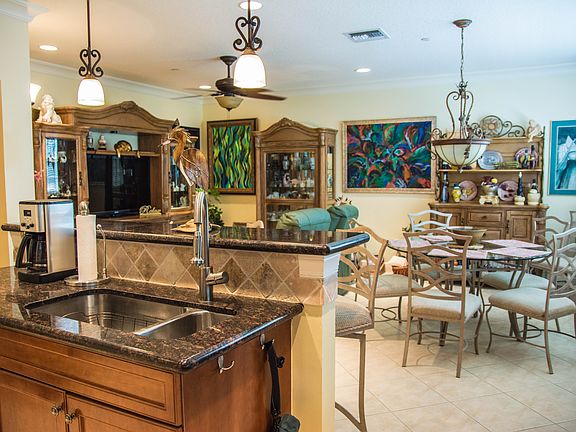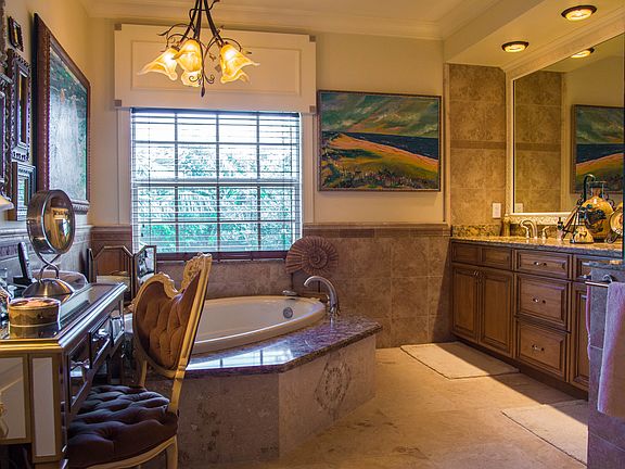 This is Trieste's ''top-of-the-line'' Bellavita model boasting more than $150,000 in upgrades including custom window treatments and Lutron lighting throughout. Elevator travels to all 3 levels. Travertine marble floors in all baths, porcelain tile in common areas including large kitchen with custom island and soft-close cabinetry. All HVAC recently serviced and professionally maintained. Gorgeous garden with courtyard lanterns (bronze statue excluded). Rinnai tankless as water heater and LG gas washer and dryer. Whole-house water treatment system, Immense master suite and bath with Jacuzzi tub and frameless glass shower with seat. Bonus room can be private 4th bedroom with closet and full bath. Or enjoy it as a large second family room. Simply gorgeous and move-in ready