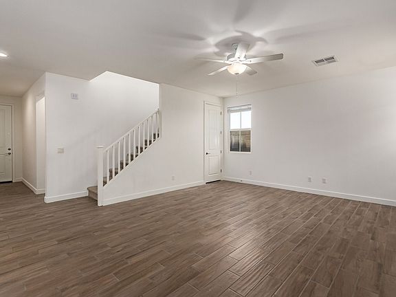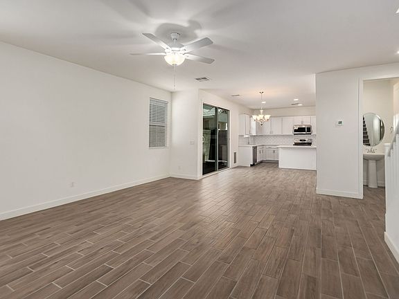 Experience this 2-story home located in the vibrant Cadence community. Step inside to discover a welcoming interior, complete with wood-look tile flooring and a spacious great room that invites you to unwind. The beautifully appointed kitchen is a chef's delight, featuring stainless steel appliances, an abundance of white cabinetry, sleek granite counters, a stylish tile backsplash, a pantry, and a central island with a breakfast bar. The sizable main bedroom offers a sanctuary for relaxation, boasting plush carpeting, a private bathroom with dual sinks, and a walk-in closet. Additional bedrooms are well-equipped with their own closets. Enjoy the community's refreshing pools, a state-of-the-art fitness center, and more. Don't miss out on this inviting home in a lively neighborhood!