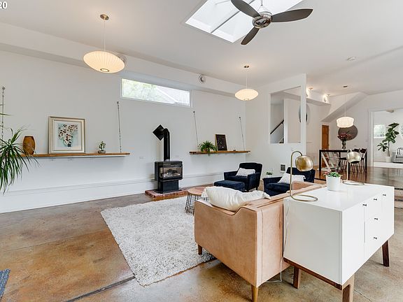 Fall in love with this "One of a Kind" Dwell-like home on a private, tranquil lot. Unique windows & skylights flood this loft-like space w/ light. Functional & open floor plan is truly amazing; featuring vaulted ceilings, concrete floors, entertainer's kitchen, gas fireplace, custom shelving, Schoolhouse fixtures, & window seat. Master suite w/ walk-in closet & balcony. Lush landscaping, organic garden beds, & patio creates the perfect outdoor space. Updates incl: radon system, A/C, & ext paint [Home Energy Score = 8. HES Report at https://rpt.greenbuildingregistry.com/hes/OR10183443]