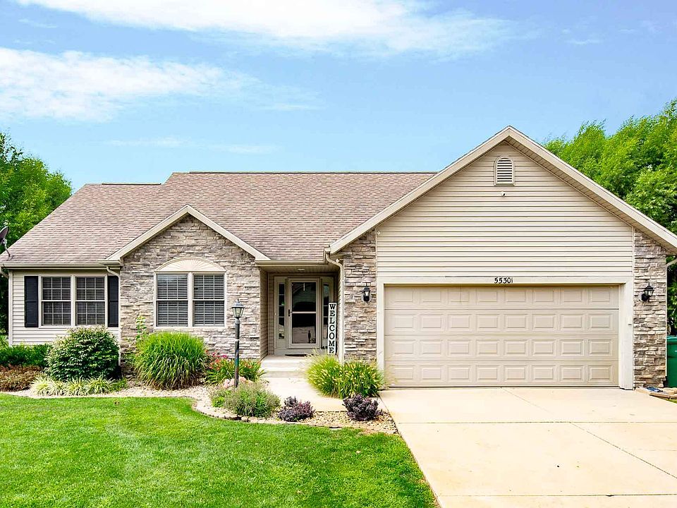 You have to move quickly if you want to be the new owner of this fantastic ranch home in desirable New Prairie Knolls with all the fantastic features you're looking for. The spacious open concept great room boasts vaulted ceilings, gas log fireplace and views of the large back yard bounded by mature trees. The kitchen features beautiful wood flooring, natural stone countertops, and upgraded stainless appliance package, plus a sunny breakfast nook that opens to the home's rear deck - perfect for entertaining and relaxation. This home is full of great amenities including generously sized bedrooms with a large master en suite, and a fully finished lower level complete with wet bar, daylight windows, plus fourth bedroom and additional full bath! Lots of home for the money, and beautifully maintained, this listing is priced to sell! So don't wait - schedule your showing today!
