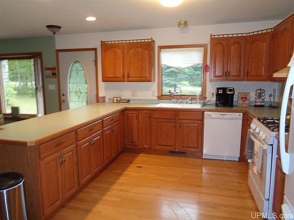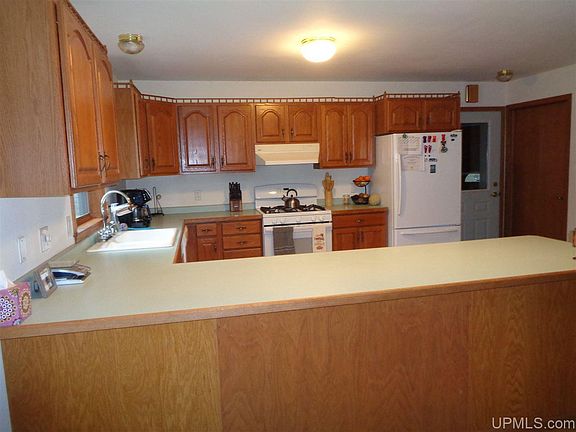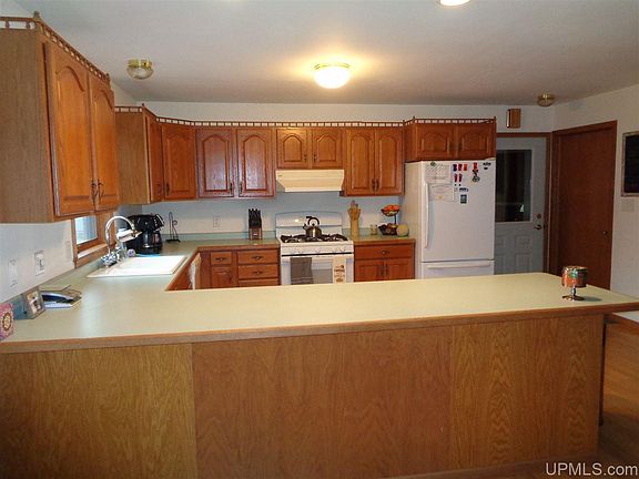 COUNTRY LIVING..RANCH-STYLE HOME....NICE GARAGES, WORKSHOP, GUEST CABIN, FENCED-IN YARD FOR PETS.......seems to answer all of your preferences...for a quality lifestyle............ AND in great proximity to the Portage Canal via the DNR public access and the Lake Superior shoreline at nearby Stanton Twp Park. and the North Entry........and to the City of Houghton, just 10 min.....the home has an appealing open living space as the kitchen, living and dining areas provide...the kitchen features a pantry and great cabinet space...a great idea from the early turn-of-the-century homes.....the wood fireplace provides ambiance and heating...with a fan to distribute the heat........the back deck is accessed from this area...the basement is high and dry and could easily be developed according to your needs....you'll find the sauna there.....the guest 'cottage' has power and a wood stove (no water)...really cute.....a wood shed....and a huge workshop ( 24 x 30) make this an ideal property for all of your projects. There is a supply of wood that remains with the house..the water filtration system contract can also be assumed (they prefer soft water)......it will be easy to imagine this as 'home'....the septic was just pumped , tank cover replaced. Internet with Shorewaves........TV with Direct TV satellie