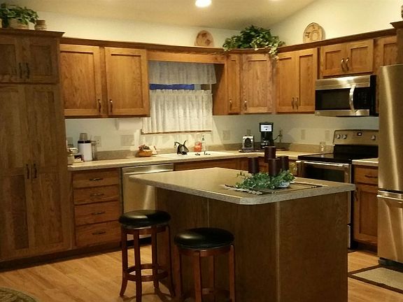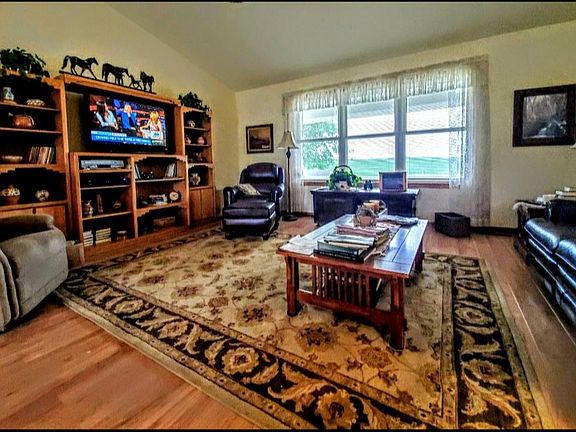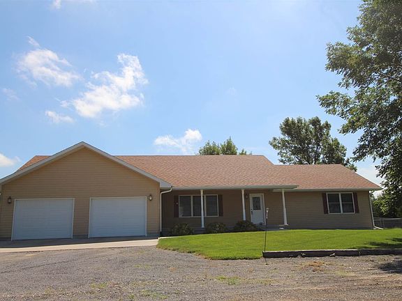 Great multi-use property! 4 bedroom 3 bath ranch on 6.58 acres. Open floor plan, vaulted ceilings, main floor laundry, appliances included. Full basement with bedroom, family room and 9' ceilings. Fenced yard, sprinkler system, well landscaped and great sunsets. 108x60 clear span building with 12x24 addition and walk door, 1-20x10, 2 - 6x8, and 2 - 12x14 doors providing drive through, plus 4 large paddocks with automatic waterers. There is also another 36x32 storage/utility building with 15x24 lean to and corral. Want a little more space? There is an additional 6.58 acres available.
