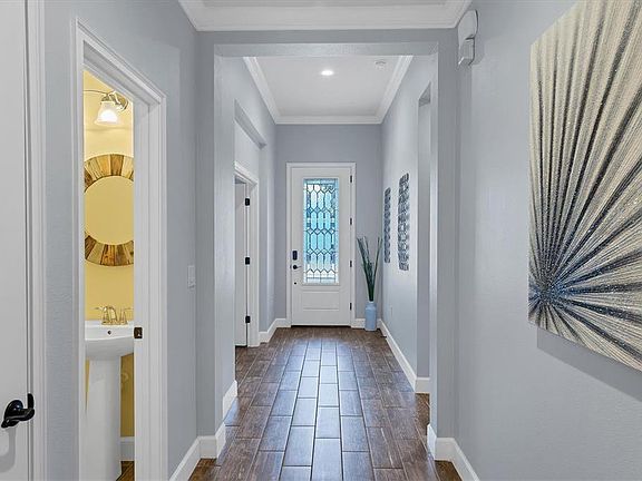 • Interior Features: Ceiling Fans(s), Eating Space In Kitchen, High Ceiling(s), Master Bedroom Downstairs, Open Floorplan, Split Bedroom, Stone Counters, Walk-In Closet(s), Crown Molding, Solid Wood Cabinets, Thermostat, Kitchen/Family Room Combo, Living Room/Dining Room Combo, Solid Surface Counters, Window Treatments