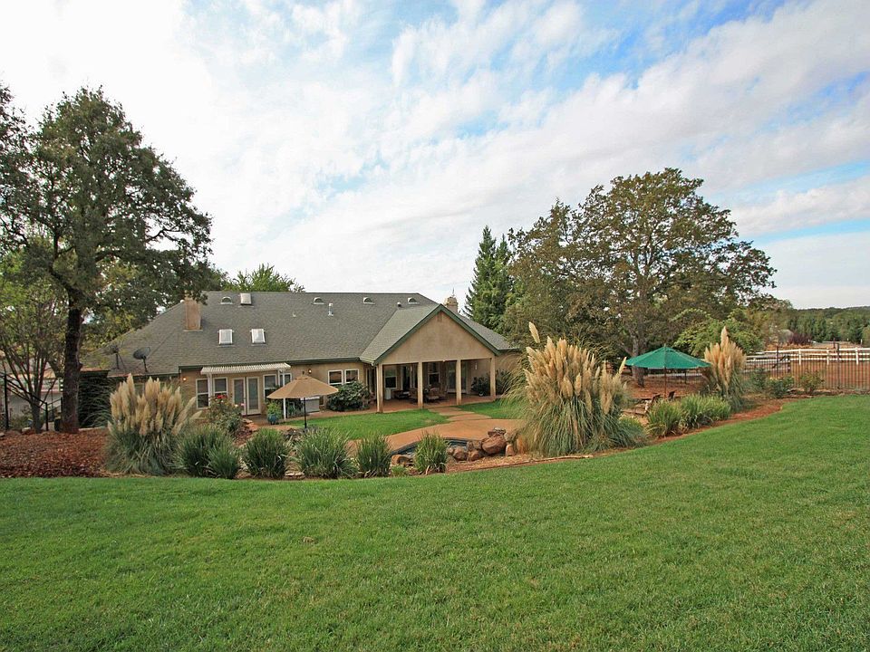 Showcase Equestian in gated Sunridge Meadows! Beautiful, custom 3100+ SF single story w/BI pool & waterfal in a resort like backyard. Chef's kitchen, hardwood floors. Formal dining. Remote master. 11 GPM well. Custom 4300 SF stucco barn w/3000SF 2nd floor. Four 12x12 indoor stalls w/outdoor covered paddocks. Covered 80ft diameter training arena. Auxilliary barn 24x48ft-2 stalls. 4 pastures. 3 rail white fencing. Community arena across street. Neighborhood Description Sunridge Meadow is a custom home community of 59 homeowners on 5 acre parcels locaterd 5 miles south of El Dorado Hills. There's a large riding arena across the street and a 10 acre fishing pond.