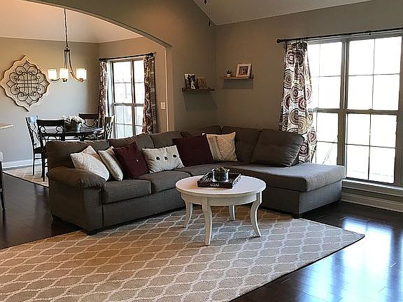 Like new Amy floor plan by ASB in beautiful Hawthorn Glen Subdivision! This all brick ranch features 4 bedrooms, 3 full bathrooms with over 1640 sf on the main floor with 10 FT ceilings in living area and spare bedrooms, WOOD flooring, GRANITE/QUARTZ in kitchen and bathrooms, OPEN floor plan, over-sized 2-car garage, first floor laundry room and a large storage area in the basement. Upgrades galore with granite composite sink, upgraded lighting, white glazed cabinets and backsplash in the kitchen! The huge 15X13 master suite features crown molding, trey ceiling and WHIRLPOOL tub. Head to the beautifully finished basement to find a 4th bedroom, and a huge 17X25 living room with a kitchenette perfect for hosting parties! With a total of 2600sf finished this home has an abundance of space for anyone to enjoy! Neighborhood Amenities included POOL and CLUBHOUSE. Sq ft & rm sz approx. Contact info below. P:219-613-1827