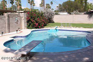 This home is special! Fantastic condition 1959 double brick on a quarter acre w/original period architectural details, diving pool, & N. facing Catalina Mountain views. Excellent location @ gateway to the Catalina foothills. Close to Ft. Lowell park & historic district, TMC, shops, schools & restaurants. Long-term owner has been in the home since 1979. Features newer 16 inch tile, neutral carpeting, wood burning brick fireplace, dual cooling (evap as is). Original 1950's tile w/artistic details