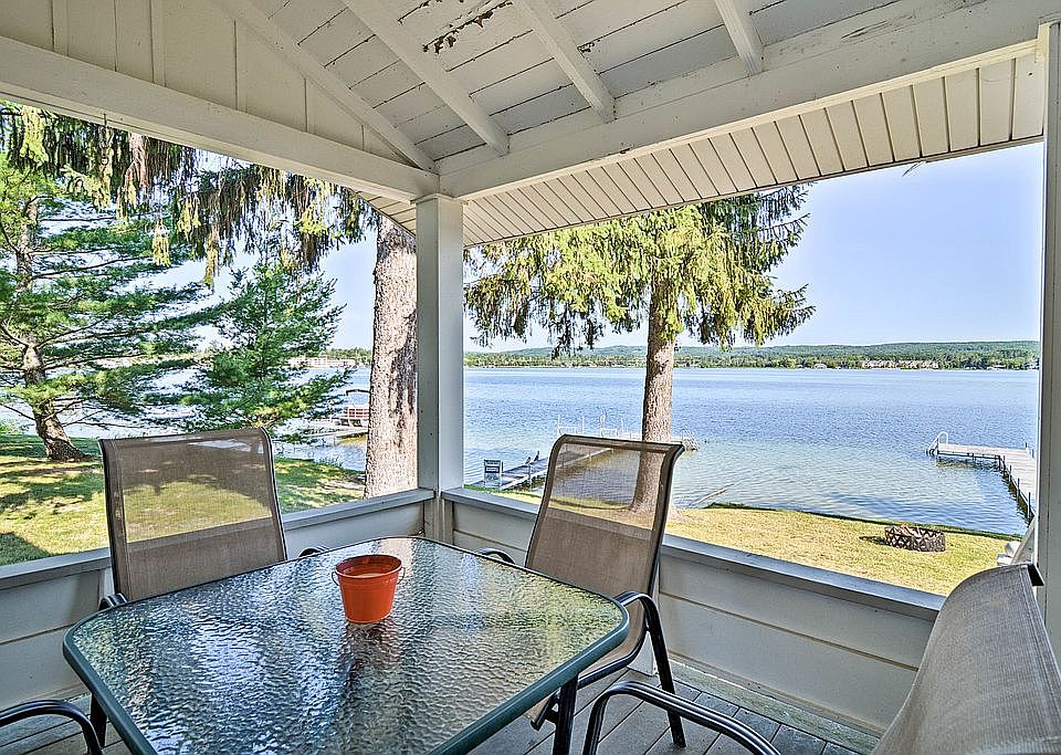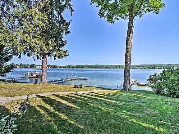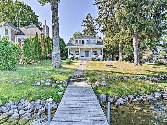 One of the best locations on Crooked Lake on highly desired Graham Rd. Deep water access and sandy at the end of the dock. Enjoy relaxing on the covered porch while watching boats and wildlife pass by. This year round cottage has classic Northern Michigan charm with numerous updates in the last 10 years. Most recently a brand new roof was installed, added insulation in ceiling and crawl space, and back deck redone. Plenty of space for the family and guests with a main floor bedroom with full bath, family and living rooms, and 2 dining areas. Nice sunny back deck and yard with 2 car garage and plenty of space for parking.