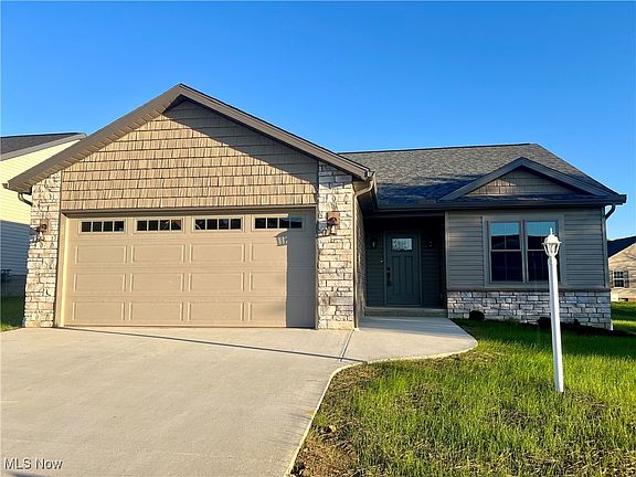 Brand new, quality built stand alone condo! Spacious, open floor plan with island bar in the kitchen featuring Dutch Creek cabinets and Quartz counters. Glass doors from the living room to the covered deck. Main floor laundry room. Walk in closet and full bath in the master suite. 2 car attached garage. Room sizes are estimates. Taxes reflect the land only. 55 and older community.