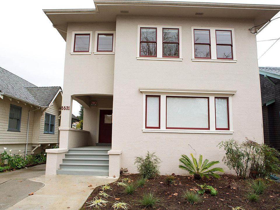 5531 Kales Avenue Located in the heart of one of the most desirable sections of Rockridge, 5531 Kales is a 3+ bedroom1914 craftsman style home that is four blocks from the Rockridge Bart Station and block above College Avenue. The house is located in a lovely neighborhood with very friendly neighbors. The house is approximately 2500 sq. feet, not including the large basement which has a separate finished space that has been used as both an au pair unit and an office in the past. There also is a laundry area with a washer and dryer in the basement. The house has 3 large bedrooms on the second floor, each with a small office/study and walk-in closet, plus 2 full-baths, one upstairs and one on the main floor. (The basement room is in addition to the 3 upstairs bedrooms.) The main floor consists of a living room (with a stone fireplace and custom cabinetry), separate dining room (also with built-in cabinets), which opens onto a small family room leading out to a small redwood deck. There is a large kitchen, with a gas cooktop, oven and refrigerator, and separate breakfast area (which also opens onto the deck through French doors). A few steps lead down from the deck to a large, newly-configured patio area suitable for outdoor dining, entertaining or hanging-out. New plantings have recently been installed in the yard. There are hardwood floors throughout the house which have just been refinished. I also have updated the electrical systems and have repainted or refurbished the paint throughout and added new light fixtures in many of the rooms. I raised my own family in this house but have rented it out for approximately the past 20 years. During that time I have had only 4 families as tenants which I believe is a testament both to the quality of the home and to the attention that I devote to maintaining an excellent relationship with my tenants. There is off-street parking and the house is cable-ready. I provide a bi-weekly gardener and pay the fees for the home security system and for trash collection. The very last bits of refurbishing are now being completed and the home is available for immediate occupancy. No pets, no smoking. One-year lease minimum, but would consider a longer term commitment. Email Owner at edie@ediesilber.com REQUIREMENTS TO MOVE IN: $6,850 for the first and last month s rent plus a refundable $3,500 security deposit. A completed application A credit report, including sources of income Rental references Proof of $100,000 of renter s liability coverage
