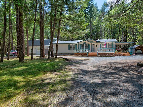 Secluded Oregon hideaway, 1997 Manufactured with 1620 sq ft 2 bed 2 bath plus a 1972 detached guest quarters with 1172 sq. ft. 1 bed 1 bath on 5.51 acres of parked out flat land abutting BLM & an easy walk to the Rogue River. The front, side, & back attached decks on the manufactured offer space to sit & enjoy your property. Add'l features include a 40X24 shop with a one car parking space & a 2nd story 40X16.5 office/craft/hobby room with custom cabinets & lots of storage, there's a shed/storage bldg, covered carport, a back deck spa, garden boxes, drip system, brick walkways, fenced back yard, & a covered RV/trailer space with hook-ups. The manufactured offers a new electric range, formal dining room plus an eat-in kitchen, walk-in pantry, ceiling fans, carpet, laminate & vinyl flooring, master walk-in closet & a master bath garden tub. The detached living space also offers a large great room, bar, kitchenette, plus a covered patio plus it has its own power meter.