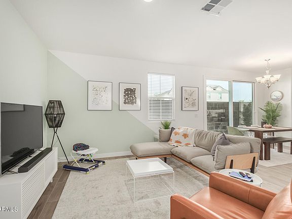 Looking for a new home? This beautiful 3 bed, 2.5 bath two-story residence in Cadence is the one! Nestled on a corner lot displaying a charming curb appeal highlighted by lovely front yard w/artificial turf. Fabulous interior boasts a welcoming great room paired with wood-look tile floors, designer paint, sliding doors to the back, and tons of natural light. You'll love the spotless kitchen featuring SS appliances, solid-surface counters, subway tile backsplash, recessed lighting, a pantry, plenty of cabinets, and a breakfast bar. A cozy loft, soft carpet t/out, and all the bedrooms upstairs! Enter the double-door main bedroom to find an ensuite with dual sinks & a walk-in closet. Out the back, you have a covered patio to relax after a busy day. Home also includes a 2-car garage! Must see!