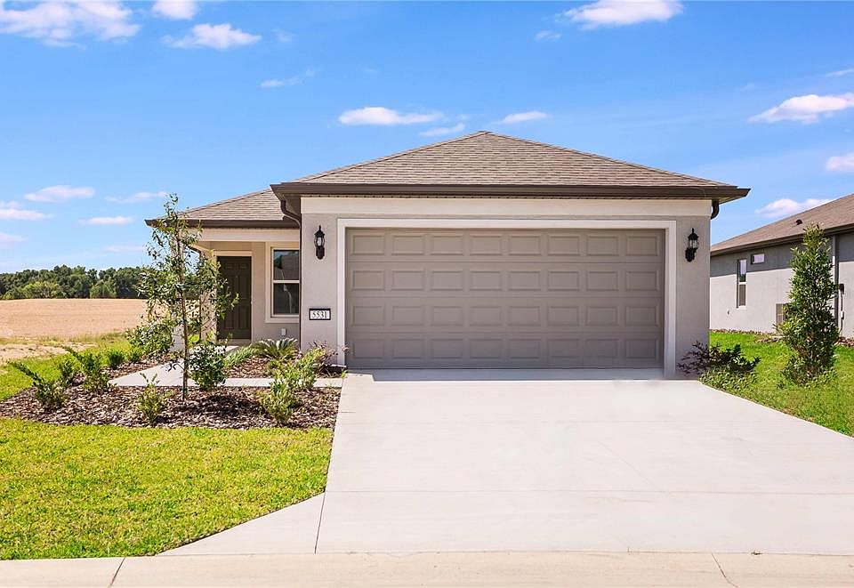 One or more photo(s) has been virtually staged. Move-In Ready Home Available NOW! Enjoy all the benefits of a new construction home in the serene setting of Ocala, FL's horse country, with an age-restricted, fully amenitized lifestyle at Del Webb Stone Creek. This is the active adult community you've been looking for, with amenities that include an 18-hole championship golf course, a full restaurant and bar, indoor and outdoor pools, sports courts, and so much more. Our sprawling amenities, clubs, and classes will fill your retirement days with activities to make new friends and memories. This popular Candlewood floor plan, with an open-concept home design, has all the upgraded finishes you've been looking for. The designer kitchen showcases a spacious center island, a large, single-bowl sink, modern burlap cabinets, 3cm quartz countertops with a 7"x8" white hexagon tiled backsplash, and Whirlpool stainless steel appliances including a range, microwave, and dishwasher. The bathrooms have matching cabinets and quartz countertops and comfort height commodes. Plus, the Owner’s bath features a walk-in shower with a bench seat and dual sinks. There is 22”x22” porcelain floor tile in the main living areas, baths, and laundry room. This home also features a convenient laundry room, a covered lanai, a large kitchen pantry, and a 2-car garage with a 4’ extension and a utility sink. Additional features and upgrades include LED downlights in select locations, pendant pre-wiring in the kitchen, TV prep in the gathering room and a Smart Home technology package with a video doorbell.