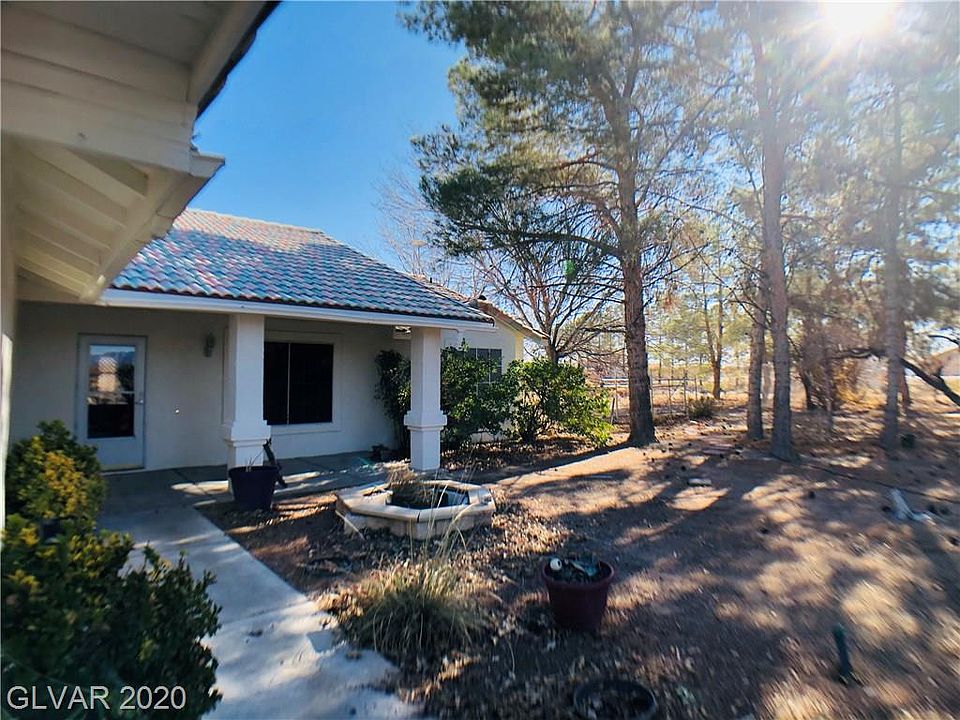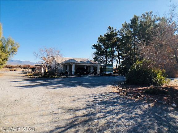 ALMOST 5 ACRES /GATED/FENCED! 3BR, 2BA, 2CAR, 1 Story Home Hidden Behind Natural Foliage. Wonderful Floor Plan, Wood Fire Place, Open Kitchen/Granite Counters/Custom Back Splash/Stainless, Enclosed Back Porch. Fruit Orchard. Horse Area/Corral. LARGE Property w Large Shade Trees. Lower Electrical Bills. SW Area CLOSE TO VEGAS. NEW Building is Happening in This Area. MAYBE OFF GRID OR GROWING POTENTIAL OR YOUR DREAM IDEAS?