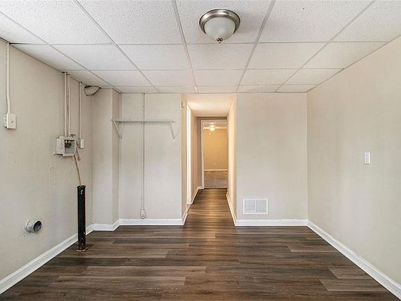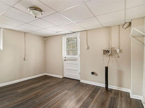 Spacious 5-bedroom, 1.75-bath single-story home with a one-car garage and a brick exterior. The kitchen features granite countertops and stainless steel appliances, all in good working condition. A small back porch provides outdoor space, while the laundry room is conveniently located in the basement. Laminate wood flooring extends through the main areas, with carpeting throughout the bedrooms.