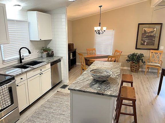 *****CALL FOR AN APPOINTMENT TODAY*****This is a beautiful, open, light, bright remodeled and furnished 2 bdrm 2 bath home. This is on a spacious corner lot. There are new luxury vinyl plank floors throughout, including 3/4" subflooring, except for the 2 bedrooms that are newly carpeted. New 2" faux wood blinds grace this home. All freshly painted as well. The living room, dining room and kitchen are a lovely open concept. All furniture you see stays with the exception of the desk in the living room. If you are looking for a gorgeous, spacious kitchen for that special chef, this one is it. New cabinetry, granite countertops, stainless steel appliances with lots and lots of cabinets. The island is amazing as well. The vaulted ceiling in these rooms make it an amazing space for entertaining all your family and friends. The guest bedroom is organized as an office right now and does have a futon for sleeping. Would fit a queen bed with ease if you desire to convert to a bedroom. The guest bathroom is completely remodeled with high vanity, tiles walk in shower and comfort height commode. The master bedroom ensuite has plenty of room and a huge walk in closet. The ensuite bathroom is also completely remodeled with high vanity, tiled walk in shower and comfort height commode. There are two covered screen porches on this home for space for relaxing or when entertaining. The shed is large with the washer, dryer, workbench, sanitary tub and shelves. Has a two car driveway. This home is spacious, has gorgeous colors, and gives you that immediate "I could live here" feel. The AC was replaced in 2017. This is a great home at a great price in a wonderful, quiet community, which means it will not last long!! Please call for an appointment today!! A 55+ retirement mobile home community situated within 10 miles of the beautiful white sand beaches on the coast, Has organized activities, a spacious clubhouse, game room, billiards, shuffleboard courts, & community swimming pool. A scenic picnic area also. Just minutes from local area shopping & dining, Don't forget about the RV storage while you are here!! **All listing information is deemed reliable but not guaranteed and should be independently verified through personal inspection by appropriate professions. Lighthouse Mobile Home, LLC cannot guarantee or warrant the accuracy of this information or condition of this property. The buyer assumes full responsibility for obtaining all current rates of lot rent, fees, or pass-on costs associated with the community, park or home from the community/park manager. Lighthouse Mobile Home LLC is not responsible for quoting of said fee