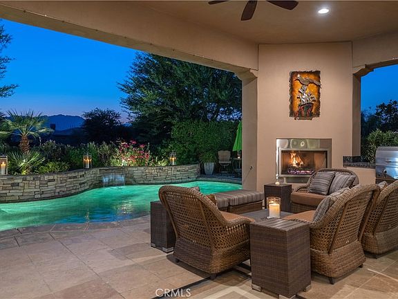 Unwind by the tranquil saltwater pool and spa, which includes a waterfall and a built-in tanning shelf. Relax under the covered patio with misters and an outdoor living room, or enjoy the evening by the outdoor fireplace. The outdoor space offers six chaise lounges, multiple umbrellas, and a built-in natural gas BBQ.